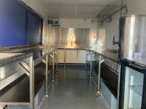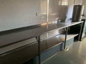 Large 16ft x 7ft x 7ft catering trailer. As we now solely cater for weddings and special events we no longer have need for our outside event trailer kitchen. Perfect for food fayres and public events. In need of some refurbishment due to inactivity (hence the price). A new interior ceiling is required, spot lights, sink connections and gas rams for hatch. Comes with all food grade stainless steel work tops, gas fired burco, sink, drink fridge, conversion box and cables for 16 and 32 amp connections, gas pipework and gas box and heat proof walls. A few days work and you will have a fantastic mobile food business ready to go! Sold as seen